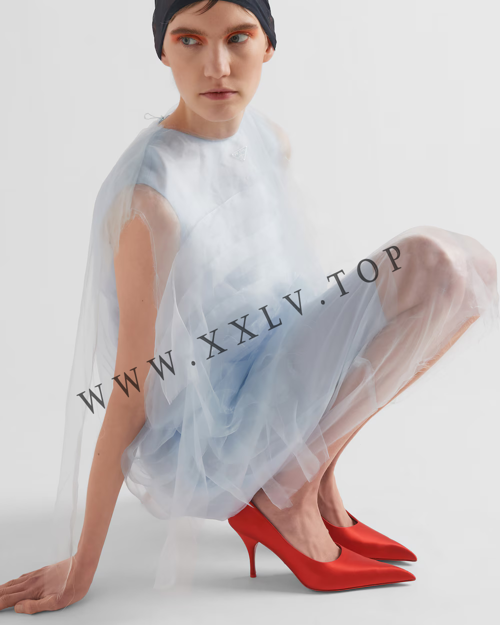 These pumps with a sophisticated, feminine design and refined details is a contemporary reinterpretation of a timeless silhouette. The style plays with bold, elongated lines that run from the pointy upper to the tapered heel. The refined simplicity of the shapes is enhanced by the lustrous finish of satin that enriches the shoe with a modern and sophisticated touch.