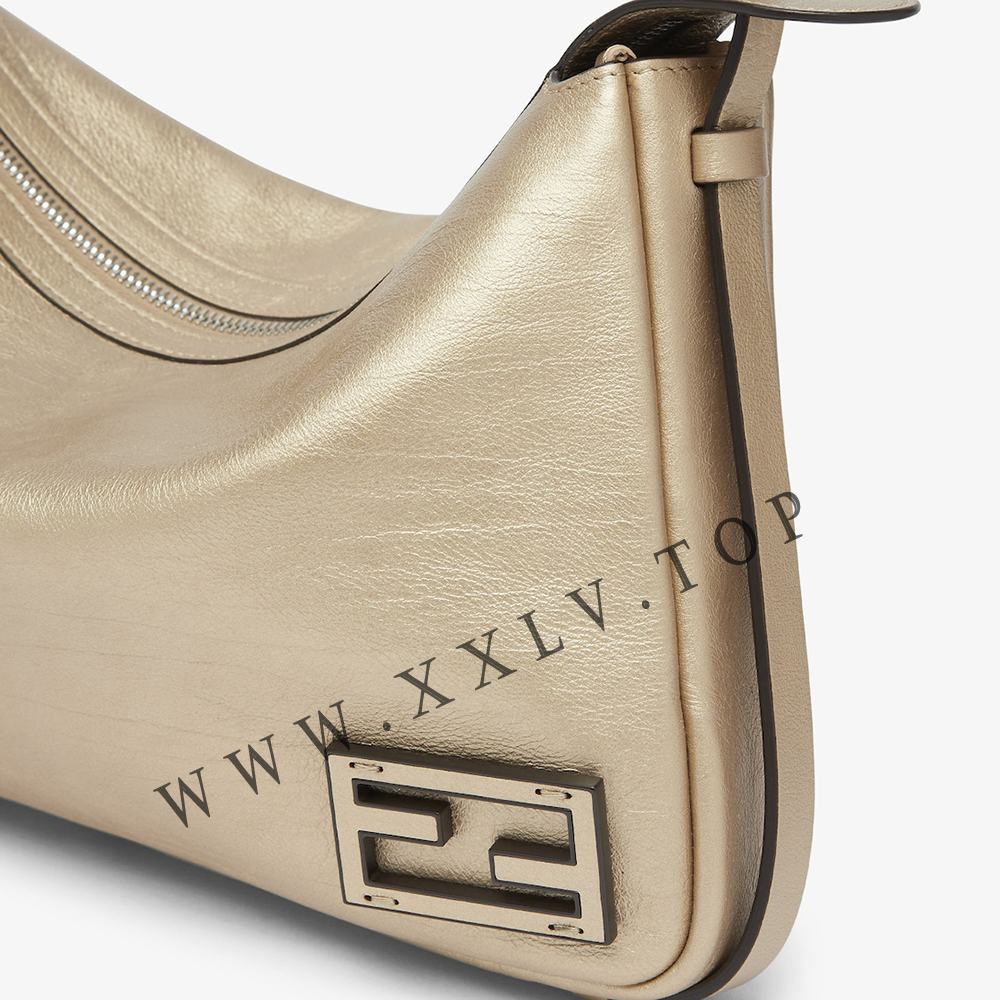 Made of champagne-colored low-sheen, metallic calfskin.