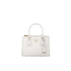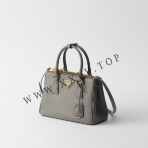 The Prada Galleria bag, which exemplifies Prada’s centennial excellence in luxury leather goods, becomes a reflection of the brand’s modernity and stylistic identity that seeks to interpret kaleidoscopic contemporaneity through a pragmatic design and structured lines. The accessory, presented in the small version, is made of iconic Saffiano leather that was patented by the founder of the brand and features a crosshatch texture and waxed finish. The Prada Galleria bag, named after the historic Prada store opened by Mario Prada in 1913 in Galleria Vittorio Emanuele II in Milan, expresses the quintessence of the brand’s timeless elegance.