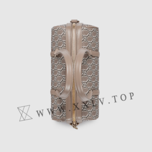 This small shoulder bag features the optical-effect GG canvas in taupe and multicolor, complete light gold-toned hardware. A matching leather shoulder strap is adjustable through a buckle, while the closure features the signature Gucci Crest zip puller.