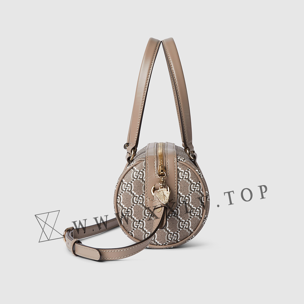 This small shoulder bag features the optical-effect GG canvas in taupe and multicolor, complete light gold-toned hardware. A matching leather shoulder strap is adjustable through a buckle, while the closure features the signature Gucci Crest zip puller.