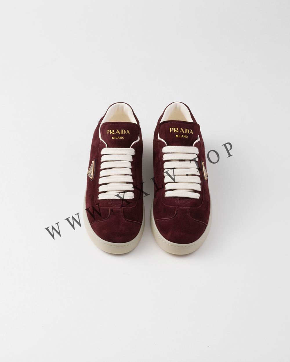 Minimalism and a sporty attitude come together in the design of these suede sneakers characterized by lightweight rubber soles decorated with the iconic triangle logo.