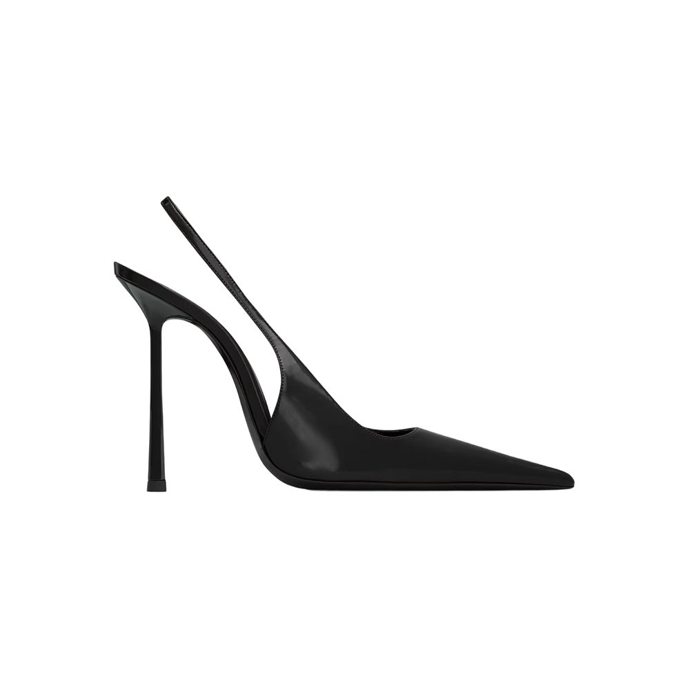 slingback pumps with a pointed toe, flared stiletto heel and elasticized slingback strap.