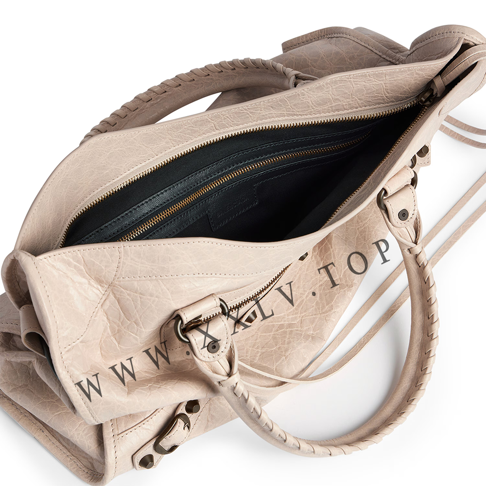 • Zipped closure with knotted leather puller